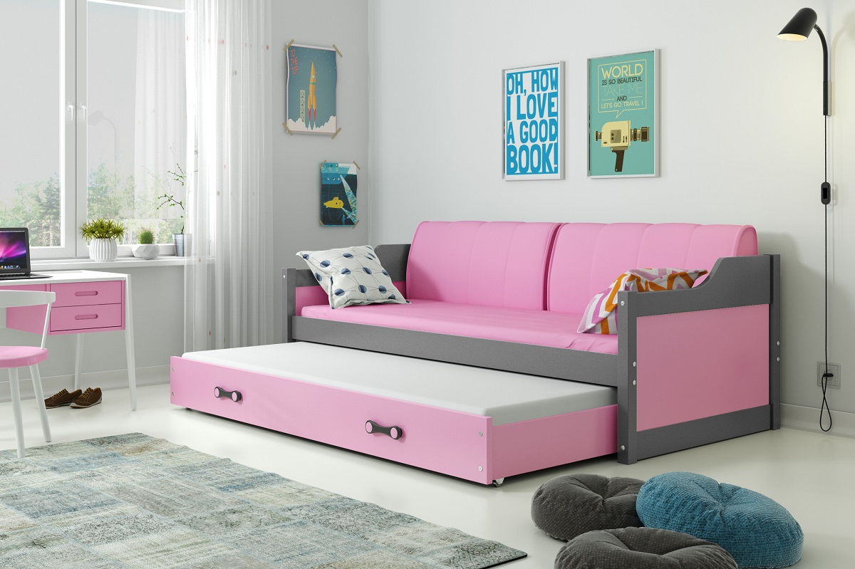 BMS Group Dětská postel David 200x90 - Grafit / růžová