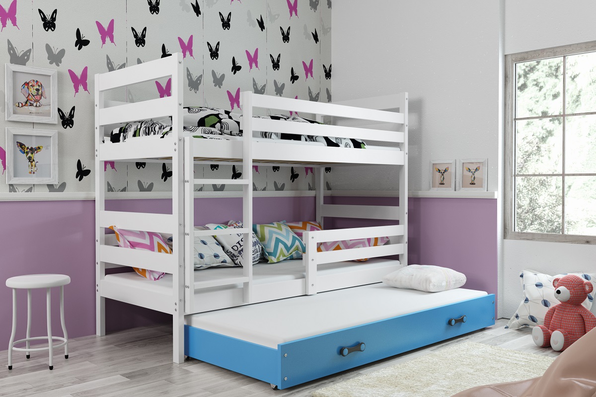 Dětská patrová postel Eryk 3 s přistýlkou je vhodná pro plnohodnotné spaní tří dětí.