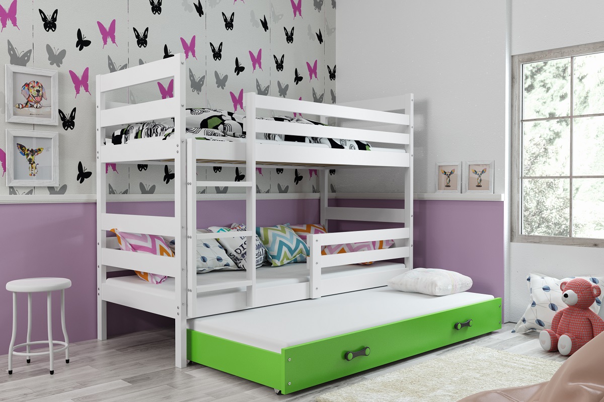 BMS Group Dětská postel Eryk 3 - Bílá / zelená - 200x90
