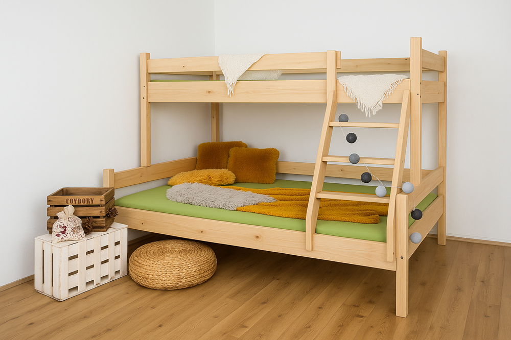 Tato patrová postel, nyní s možností úpravy rozměrů na přání, se dokonale přizpůsobí každému dětskému pokoji. Nabízíme flexibilní řešení pro všechny prostory a potřeby, takže vaše postel nebude jen centrem hry a odpočinku, ale i perfektně padnoucím kouskem nábytku. Upravte si délku, šířku a výšku dle vašich představ a vytvořte ideální prostředí pro sny vašeho dítěte.