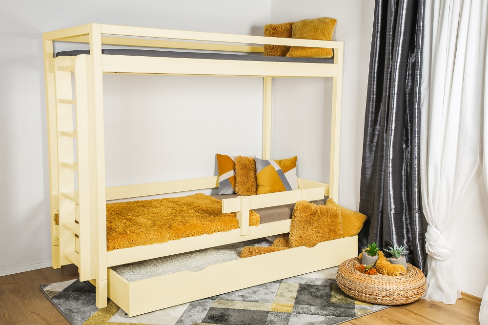 Tato patrová postel, nyní s možností úpravy rozměrů na přání, se dokonale přizpůsobí každému dětskému pokoji. Nabízíme flexibilní řešení pro všechny prostory a potřeby, takže vaše postel nebude jen centrem hry a odpočinku, ale i perfektně padnoucím kouskem nábytku. Upravte si délku, šířku a výšku dle vašich představ a vytvořte ideální prostředí pro sny vašeho dítěte.
