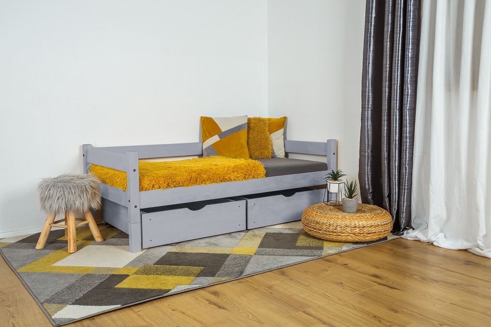 Dětská postel Mia s úložnými šuplíky potěší oko každého rodiče, který má rád jednoduchý design. Postel je vyrobena z kvalitního českého dřeva a je vhodná nejen do dětského pokoje, ale i do studetského pokoje či pokoje pro hosty. Díky své nosnosti poslouží k spánku i dospělým osobám. Pokud by postel byla koupena pro menší dítě, nabízíme možnost dokoupení bezpečnostní zábrany. Úložného prostoru je vždy nedostatek, proto jsou k posteli připojené také dva úložné šuplíký, které pojmou lůžkoviny, hračky ale i spoustu dalšího. Tato varianta dvou menších úložnych šuplíku je zejména pro menší děti lepší na manipulaci a také ji oceníte, pokud vedle postele máte noční stolek a celý šuplík by nešel otevřít.