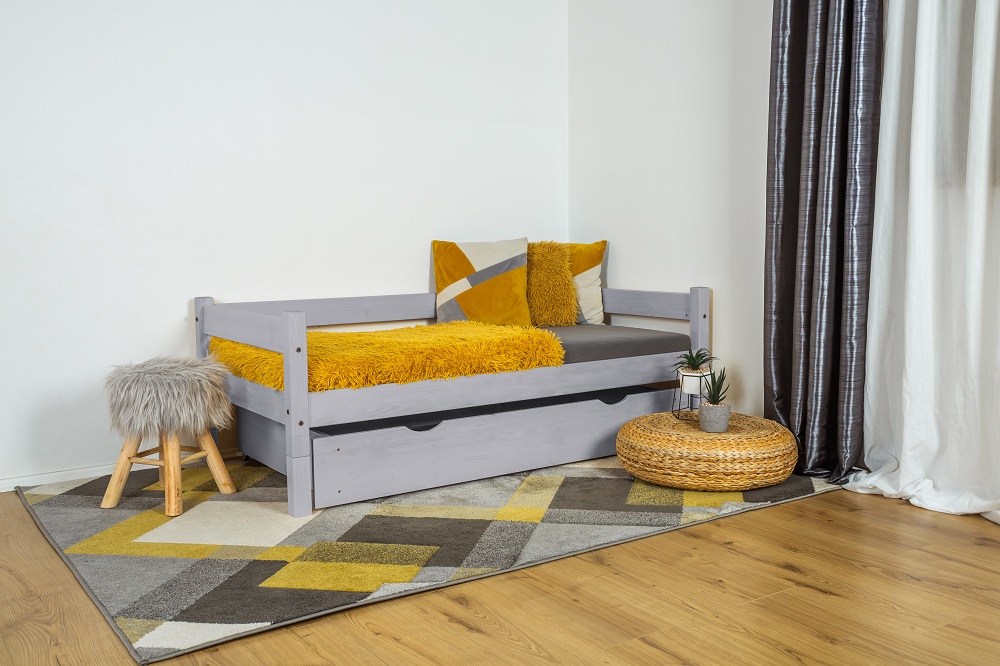Dětská postel Mia s úložným šuplíkem potěší oko každého rodiče, který má rád jednoduchý design. Postel je vyrobena z kvalitního českého dřeva a je vhodná nejen do dětského pokoje, ale i do studetského pokoje či pokoje pro hosty. Díky své nosnosti poslouží k spánku i dospělým osobám. Pokud by postel byla koupena pro menší dítě, nabízíme možnost dokoupení bezpečnostní zábrany. Úložného prostoru je vždy nedostatek, proto je k posteli připojen také velký úložný šuplík, který pojme lůžkoviny, hračky ale i spoustu dalšího.