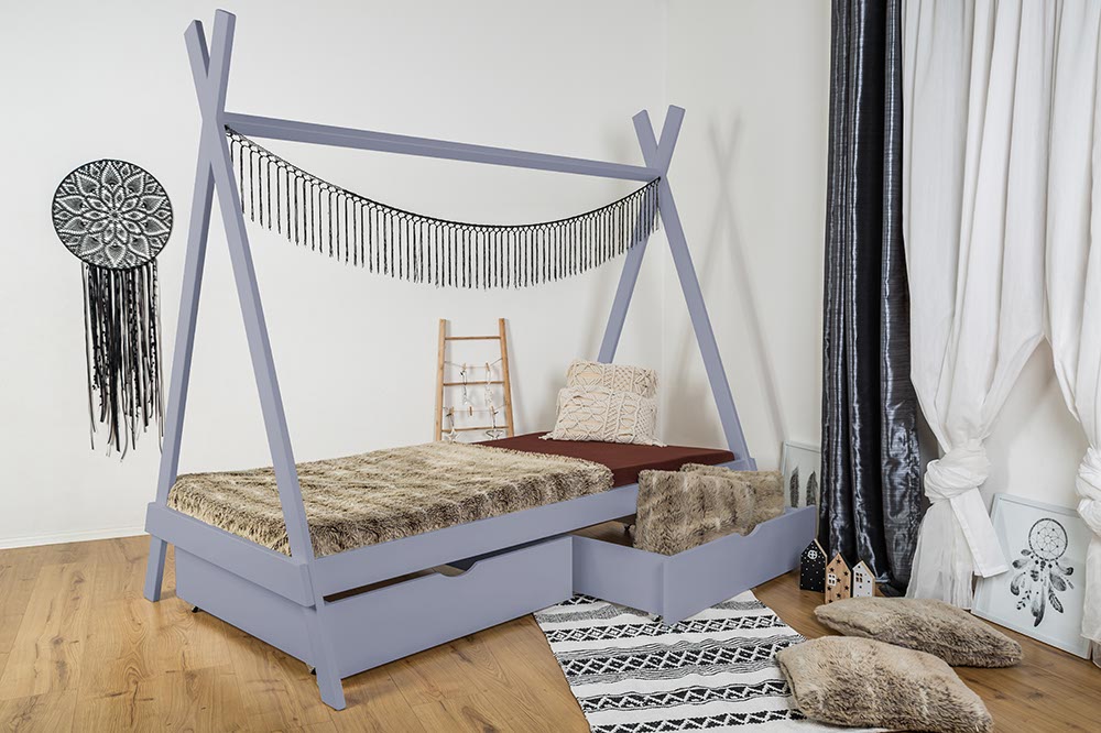 MAXIDO Dětská postel Teepee - dva šuplíky 160x80 Šedádo 14 dnů10 400 Kč/ ks8 595 Kč bez DPH