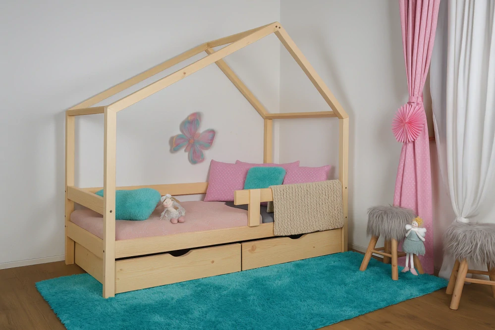 Domečková postel, nyní s možností úpravy rozměrů na přání, se dokonale přizpůsobí každému dětskému pokoji. Nabízíme flexibilní řešení pro všechny prostory a potřeby, takže vaše postel nebude jen centrem hry a odpočinku, ale i perfektně padnoucím kouskem nábytku. Upravte si délku, šířku a výšku dle vašich představ a vytvořte ideální prostředí pro sny vašeho dítěte.