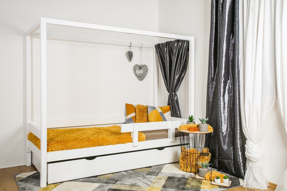 Dětská postel Vali je navžena pro zákazníky, kteří se rádi odlišují. Robustní konstrukce z kvalitního českého dřeva je krásným designovým prvkem. Děti velmi rády konstrukci využívají pro stavění bunků a domečků. Bezpečnost dětské prostele zajistí zábrana, která zejména u malých dětí zabrání vypadnutí z postele a zajistí bezstarostné snění. Úložný šuplík pod dětskou postelí je dobře využitelný na lůžkoviny a hračky.
