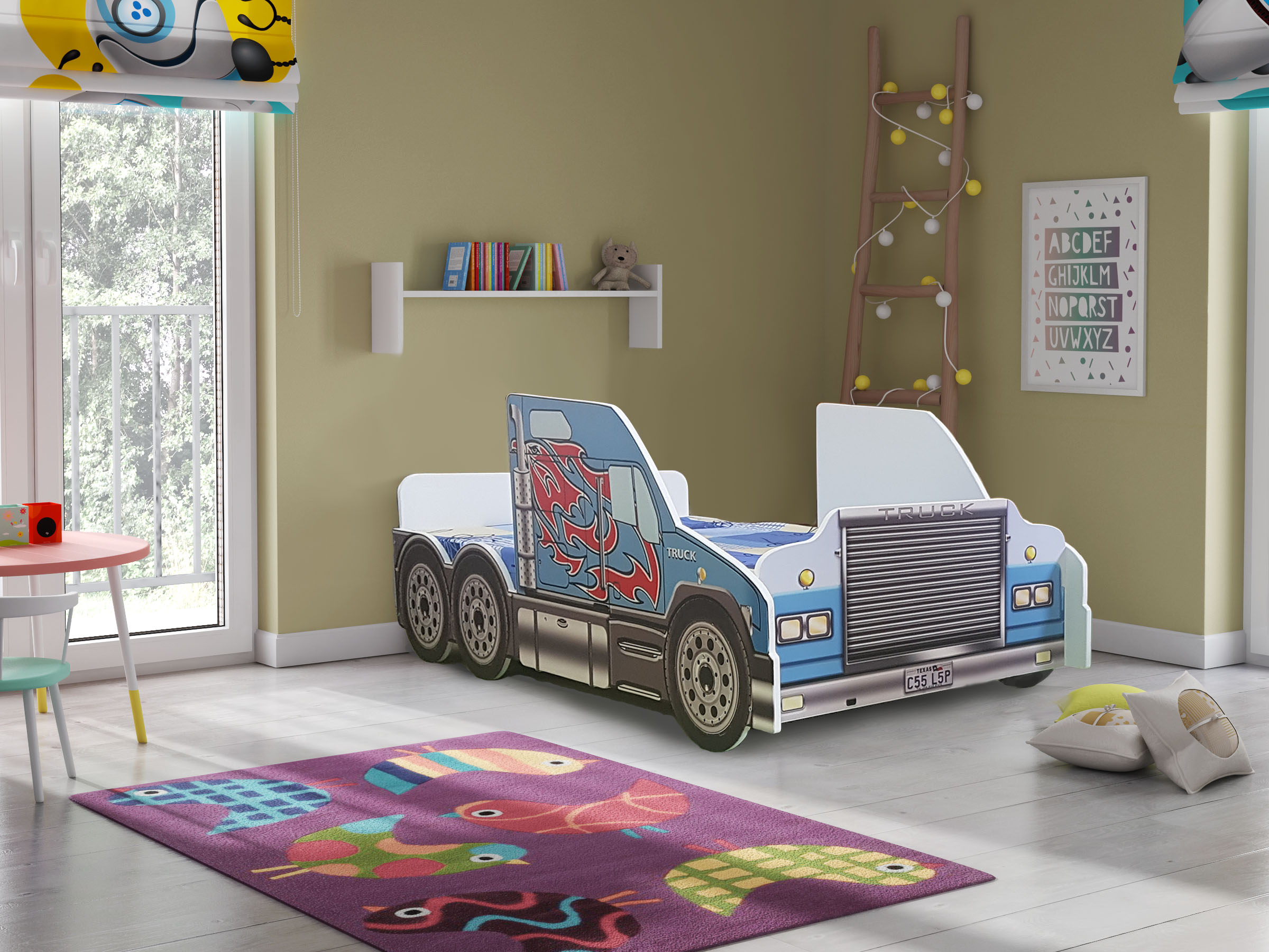 Dětské postele ve tvaru auta jsou stále oblíbenější a žádanější. Pro zákazníky, kteří chtějí menší provedení oblíbené dětské postele, můžeme nabídnout model Truck ve verzi Mini o rozměru matrace 160x80cm. Postel auto 160x80 je vyrobena z MDF s dřevěným roštěm a s plastovými dekory, V ceně je matrace a rošt .