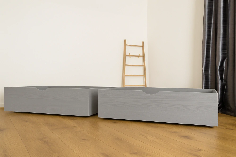 Úložného prostoru je vždy nedostatek, proto nabízíme možnost k postlím MAXIDO dokoupít také úložné šuplíky. Šuplíky pojmou lůžkoviny, hračky nebo sezonní oblečení a v dětském pokojíčku bude opět více prostoru k hraní.