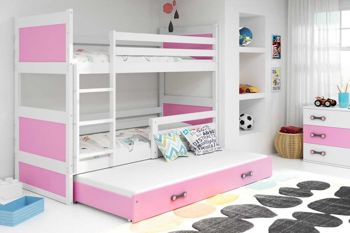 BMS Group Dětská patrová postel Rico 3 - Bílá/růžová 190 x90
