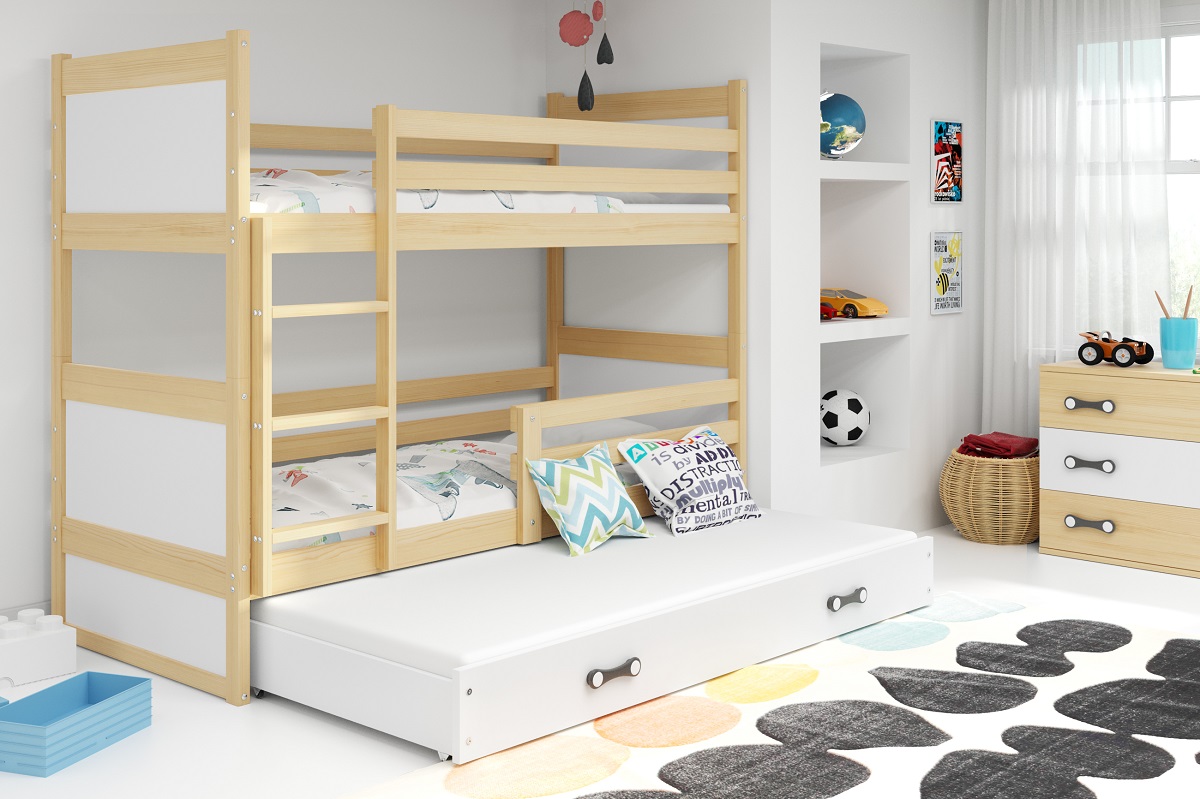 BMS Group Dětská patrová postel Rico 3 - Borovice/bílá 190 x 90