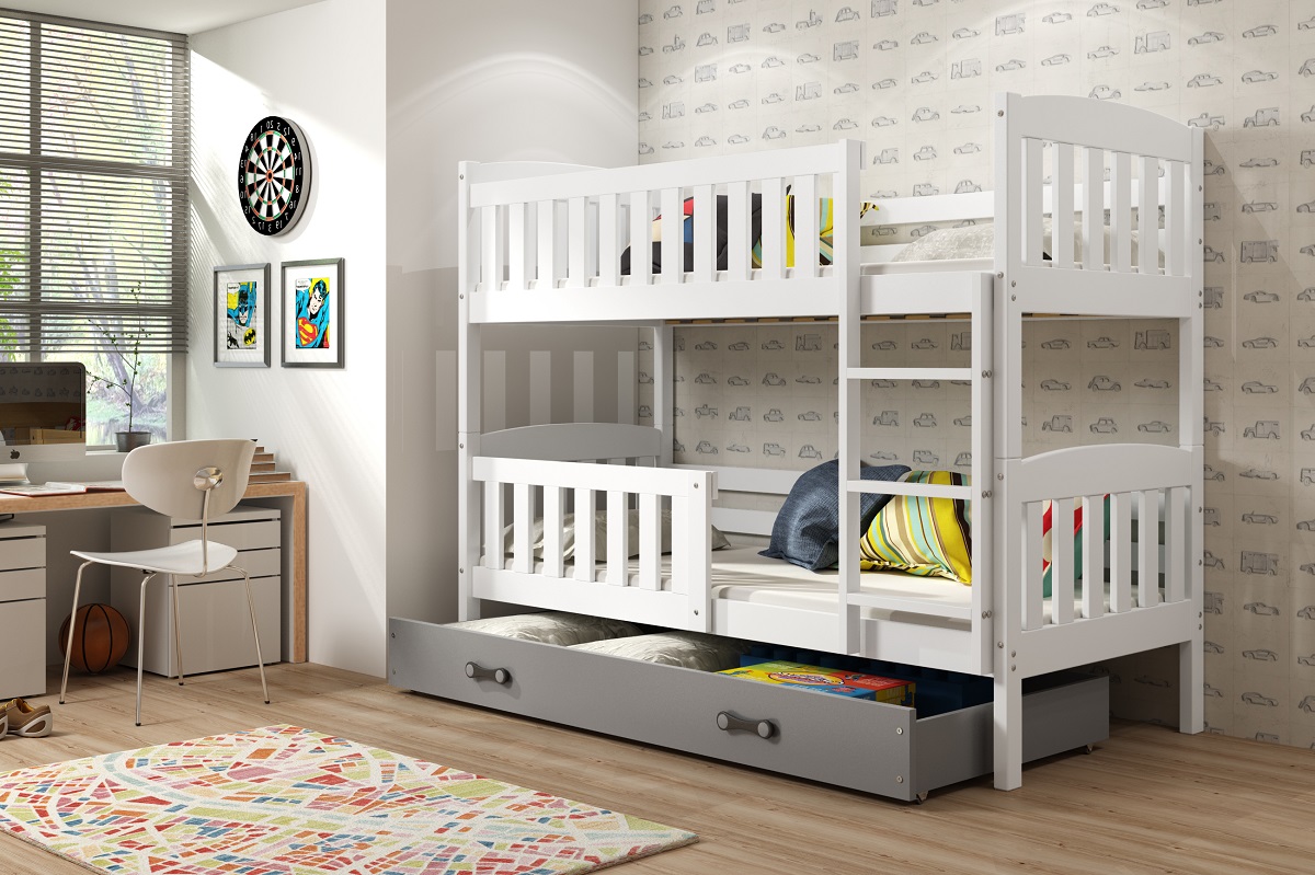 Dětská patrová postel Kubus se šuplíkem je vhodná pro plnohodnotné spaní dvou dětí.