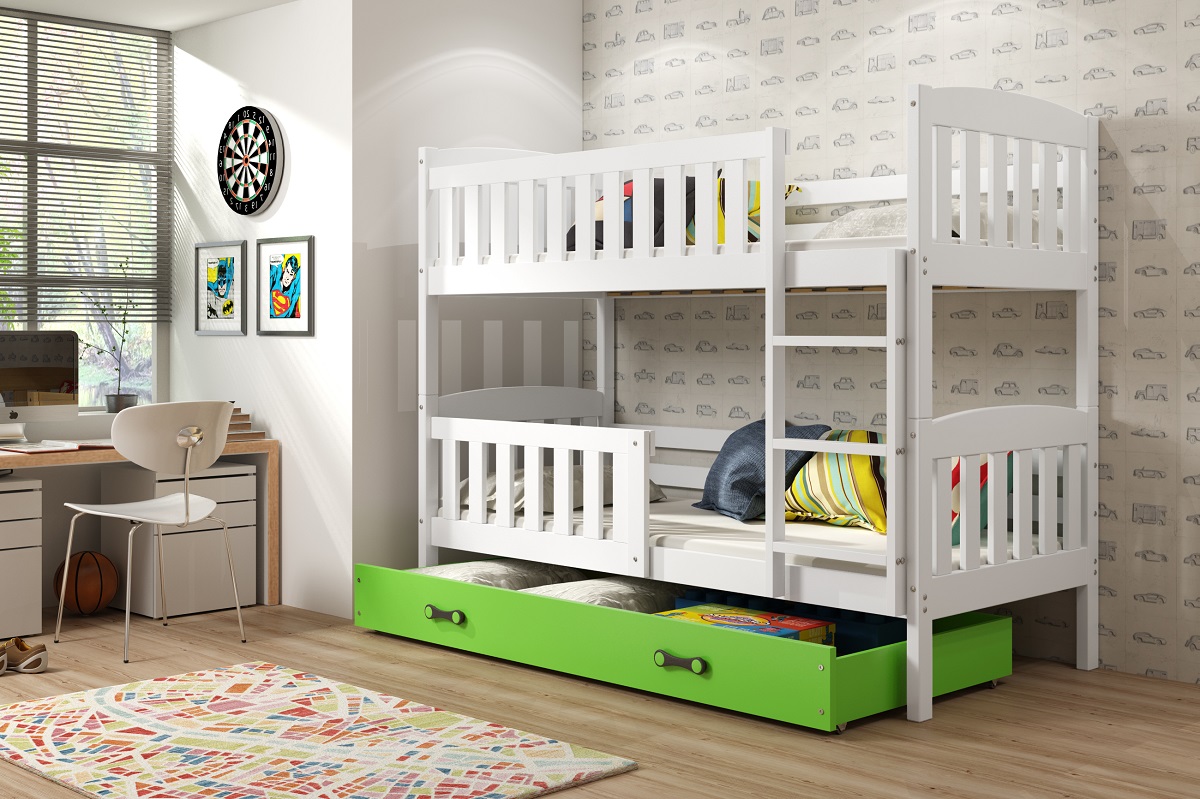 BMS Group Dětská postel Kubus patrová Bílá/zelená 190 x 90
