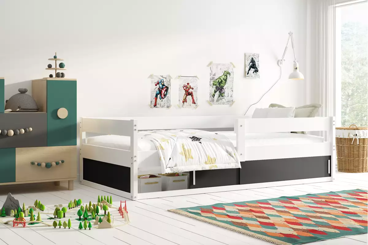 Tato dětská postel se zábranou je ideální volbou pro bezpečný spánek i těch nejmenších dětí. Díky praktickým zábranám na stranách poskytuje maximální ochranu a klidný spánek. Postel navíc nabízí chytré řešení s úložným prostorem pod postelí, který je ideální pro uskladnění hraček, ložního prádla nebo oblečení. Součástí balení je také matrace a rošt, takže je postel ihned připravena k použití. Spojuje bezpečnost, komfort a praktické využití prostoru v jednom moderním designu. Postel je vyrobená z borovicového dřeva, barevné díly jsou oboustraně lakovené MDF.