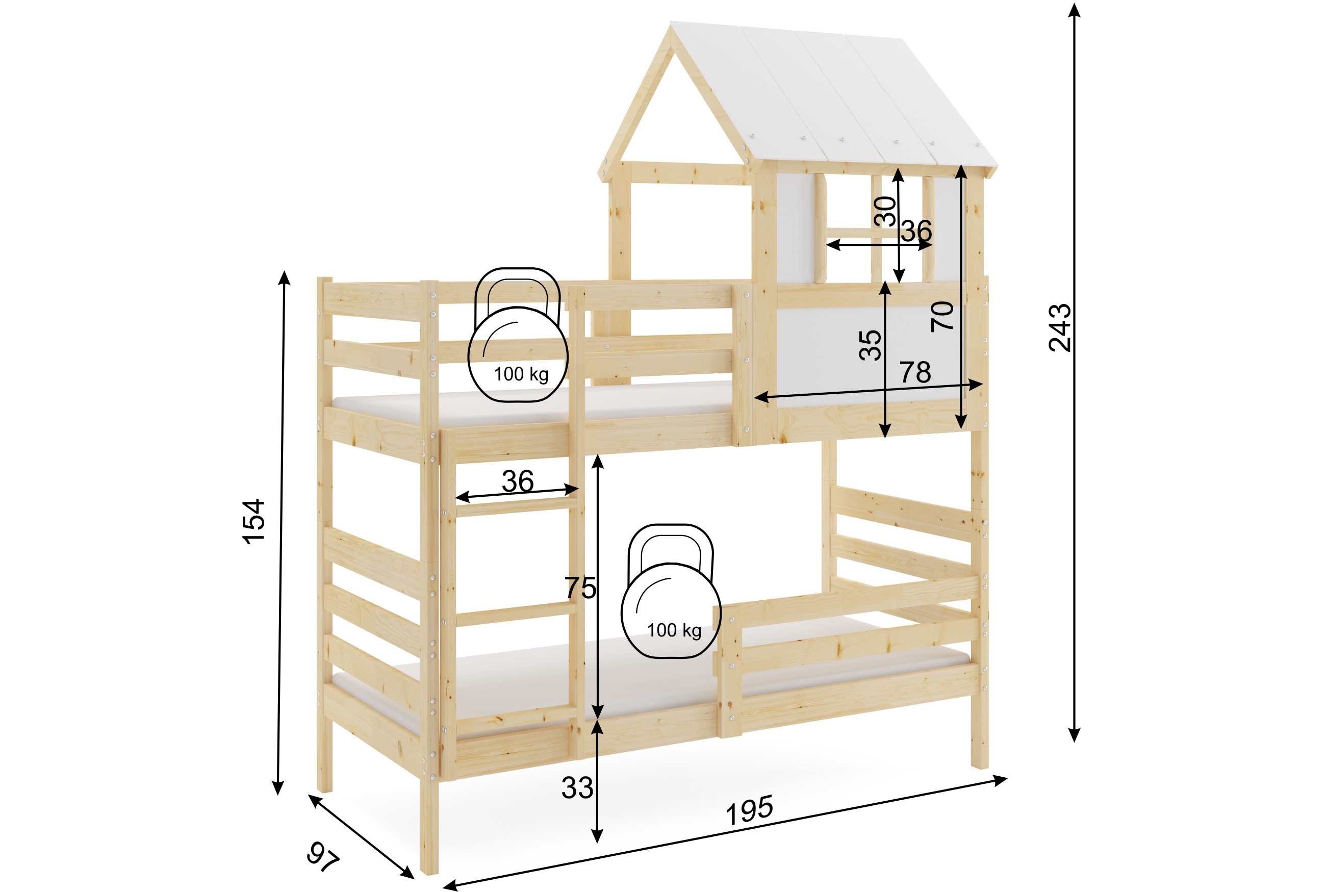 Dětská patrová postel domeček Eryk 190 x 90 přírodní | bez matrací