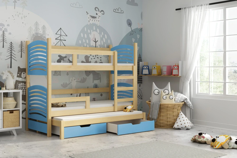 Dětská patrová postel pro 3 děti s úložnými šuplíky – chytré řešení do dětského pokoje