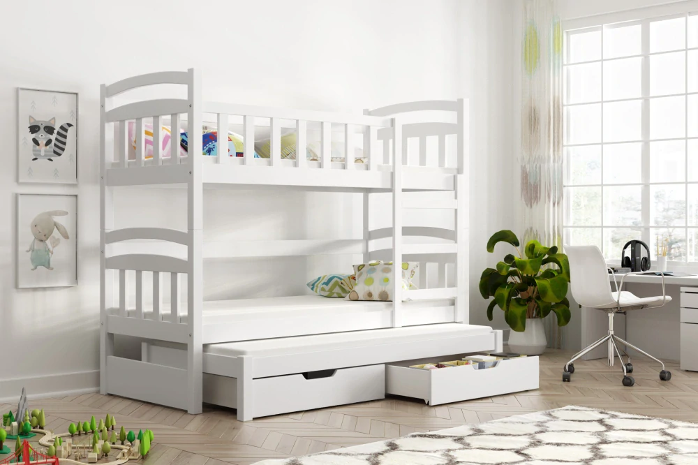 Dětská patrová postel pro 3 děti Damian 200 x 90 bílá