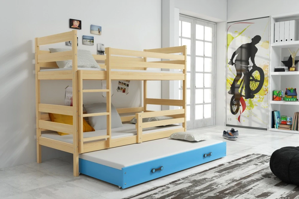 Dětská patrová postel Eryk 3 s přistýlkou je vhodná pro plnohodnotné spaní tří dětí.