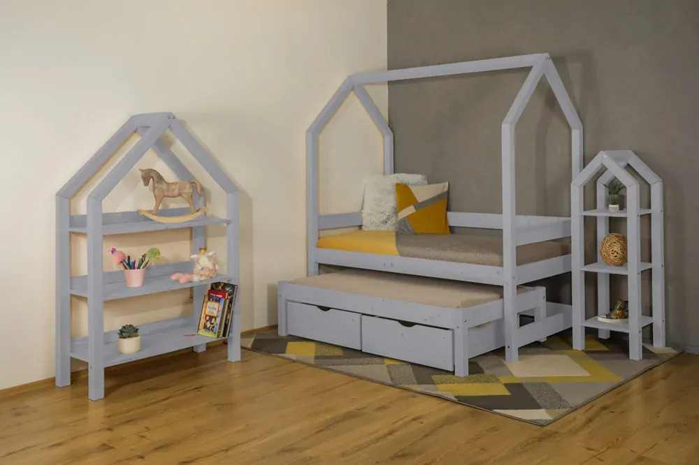 Dětská domečková postel Snílek je mezi dětmi a rodiči velmi oblíbena díky své jednoduché konstrukci, proto jsme k posteli přidali podstavec s přistýlkou, aby postel mohla sloužit pro plnohodnoté spaní až dvou osob a velmi praktické šuplíky pro ukládání věcí. Přistýlka k posteli má rošt a unese nejen kamaráda, sourozence, ale i také rodiče pro čtení pohádek na dobrou noc. Pokud by postel byla koupena pro menší dítě, nabízíme možnost dokoupení bezpečnostní zábrany. Postel Snílek je vhodná nejen do dětského pokoje, ale i do studetského pokoje či pokoje pro hosty. Bezpečnost zajistí kvalitní konstrukce z českého dřeva s vysokou nosnosti 150kg na hlavní lůžko a 150kg na přistýlku.