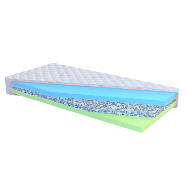Oboustranná sendvičová matrace s rozdílnou tvrdostí stran. Materiál potahu ALOE VERA prošitý polyesterovým rounem z dutého vlákna. Materiál jádra Modrá strana je vyrobena z kvalitní vysoce elastické studené pěny typu HR4037. Zelená strana je vyrobena z kvalitní studené pěny typu HR3835 a střední vrstva je vyrobena z pojené polyuretanové pěny typu R80.