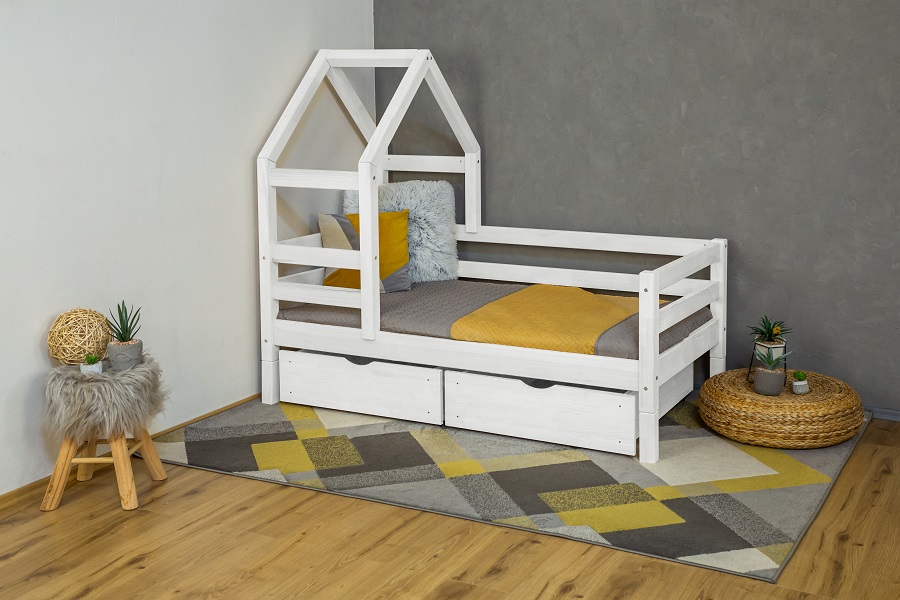 Dětská postel Dora se dvěma šuplíky je domeček pro každého malého rošťáka. Děti u této dětské postele ocení pohodlí, vzhled a možnost na konstrukci postele věšet dekorace a také deky na stavění bunkrů. Rodiče ocení zajištění bezpečnosti díky kvalitní konstrukci z českého dřeva. Úložný šuplík pod dětskou postelí je dobře využitelný na lůžkoviny a hračky.