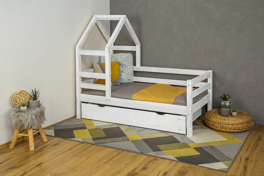 Dětská postel Dora s jedním šuplíkem na kolečkách je domeček pro každého malého rošťáka. Děti u této dětské postele ocení pohodlí, vzhled a možnost na konstrukci postele věšet dekorace a také deky na stavění bunkrů. Rodiče ocení zajištění bezpečnosti díky kvalitní konstrukci z českého dřeva. Úložný šuplík pod dětskou postelí je dobře využitelný na lůžkoviny a hračky.