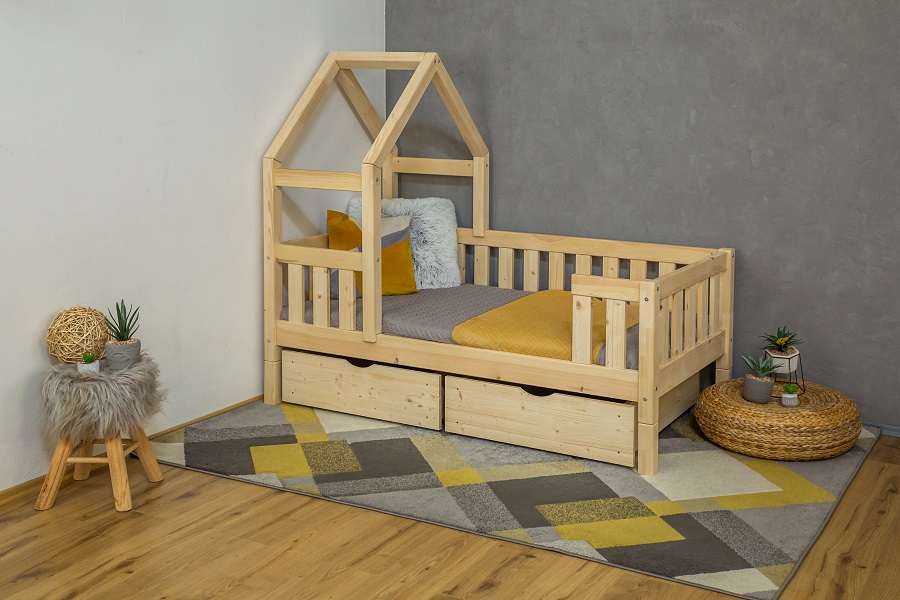Dětská postel Zara s dvěma šupíky je domeček pro každého malého rošťáka. Děti u této dětské postele ocení pohodlí, vzhled a možnost na konstrukci postele věšet dekorace a také deky na stavění bunkrů. Rodiče ocení zajištění bezpečnosti díky kvalitní konstrukci z českého dřeva a také velmi praktické zábraně. Úložný šuplík pod dětskou postelí je dobře využitelný na lůžkoviny a hračky.