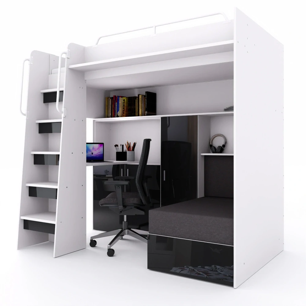 - Psací stůl – praktické pracovní místo pod postelí.