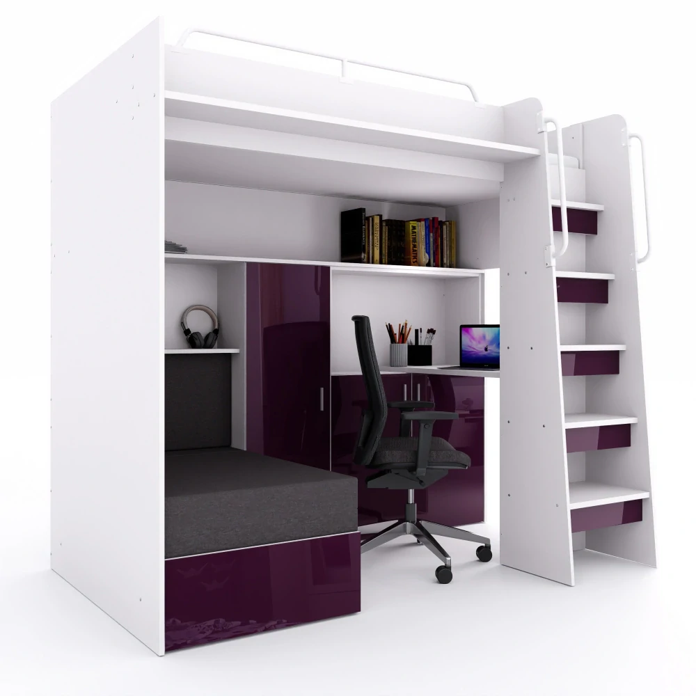 Patrová postel Jasmína 200 x 90 cm s psacím stolem - Lesk fialová - praváSKLADEM 1 - 3 týdny19 590 Kč/ ks16 190 Kč bez DPH