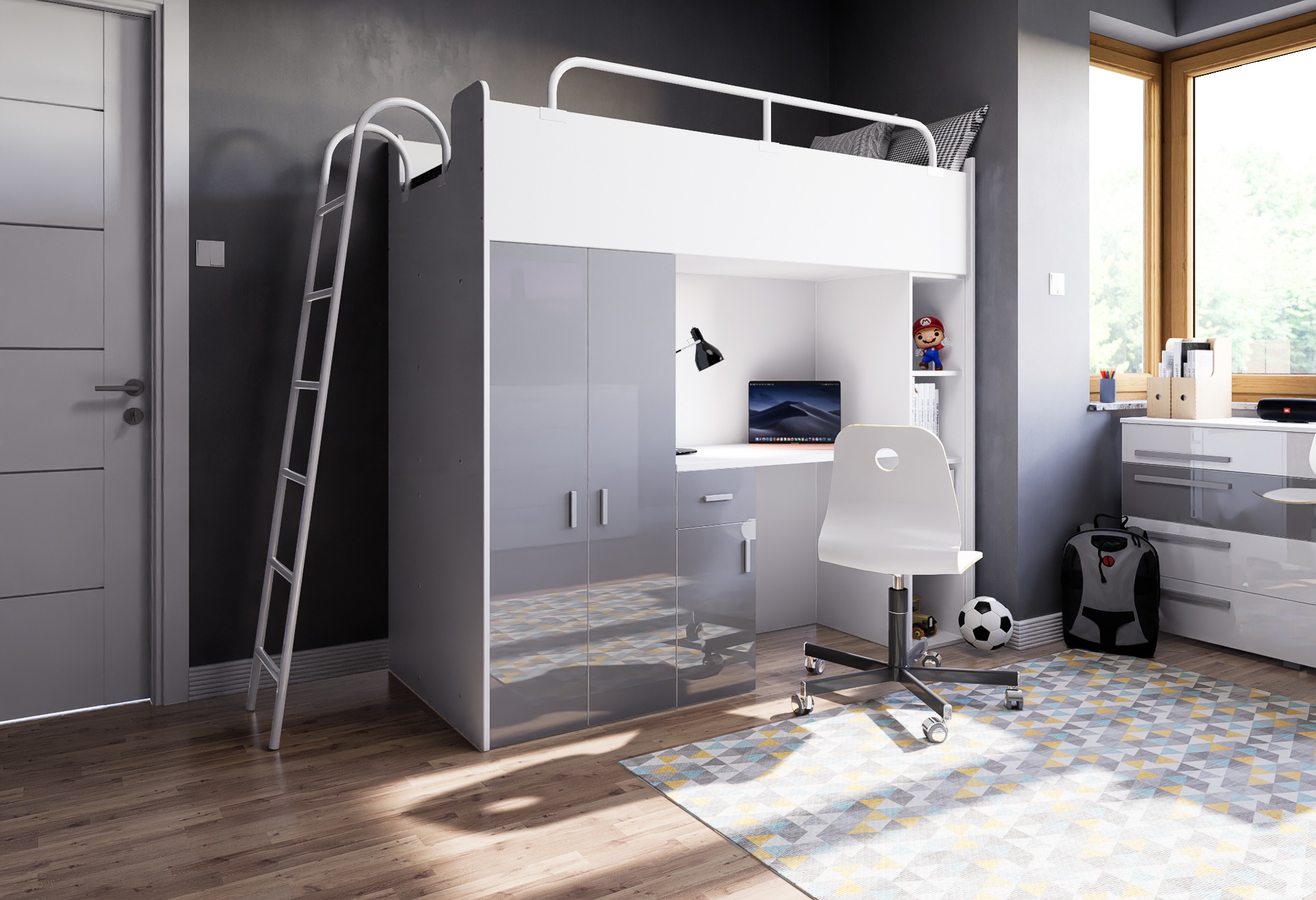 Tato patrová postel s pracovním koutem je skvělou volbou pro rodiče, kteří hledají praktický a moderní nábytek do dětského pokoje. Díky různým barevným kombinacím ji snadno sladíte s ostatním vybavením interiéru.