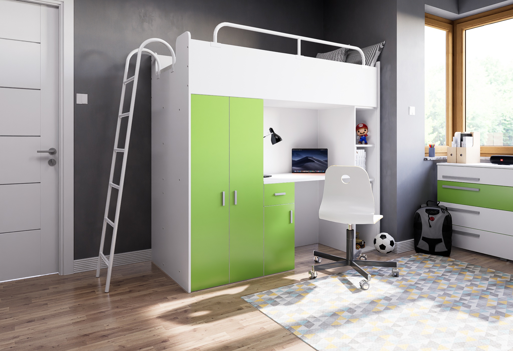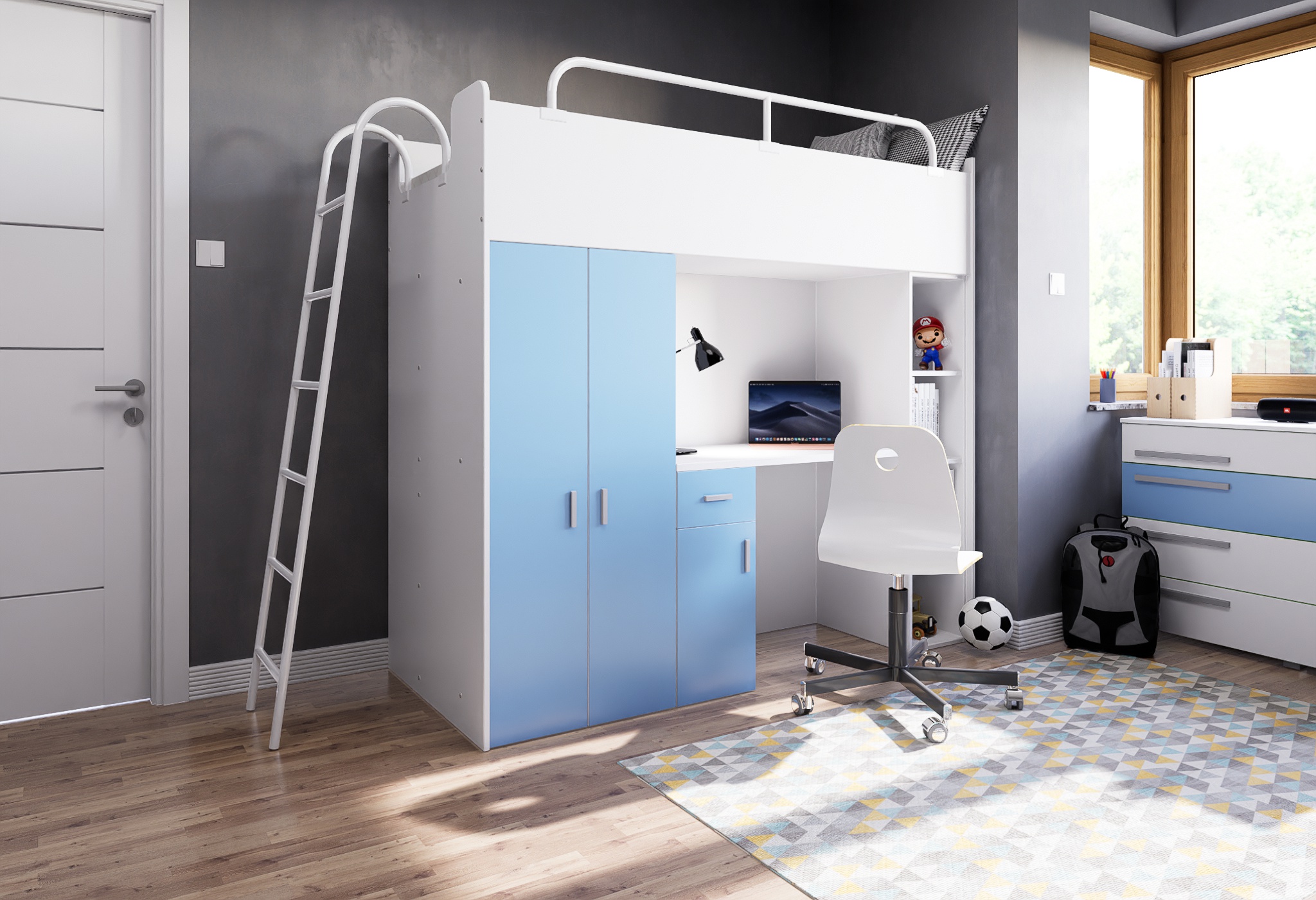 Tato patrová postel s pracovním koutem je skvělou volbou pro rodiče, kteří hledají praktický a moderní nábytek do dětského pokoje. Díky různým barevným kombinacím ji snadno sladíte s ostatním vybavením interiéru.