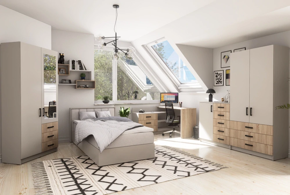 Postel Sigma se perfetně hodí k dalšímu nábytku Sigma, který naleznete na našem webu. Nábytek Sigma k sobě perfetkně pasuje taky, aby bylo možno vytvořit dokonalý dětský pokoj, ložnici či pracovnu.