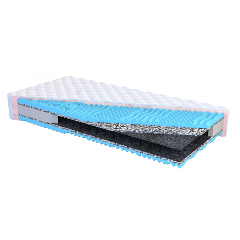 Oboustranná pružinová matrace s masážním profilem ze studené pěny a kvalitními pružinami české výroby. Materiál potahu ALOE VERA prošitý polyesterovým rounem z dutého vlákna. Materiál jádra Pružinová kostra Bonnel vyrobená z drátu o průměru 2,4 mm zaručuje dlouhou životnost kostry. Vrchní vrstvy jsou vyrobeny z kvalitní pojené polyuretanové pěny typu R80 a z kvalitní studené pěny typu HR4037 s masážním profilem rozděleným do sedmi zón.