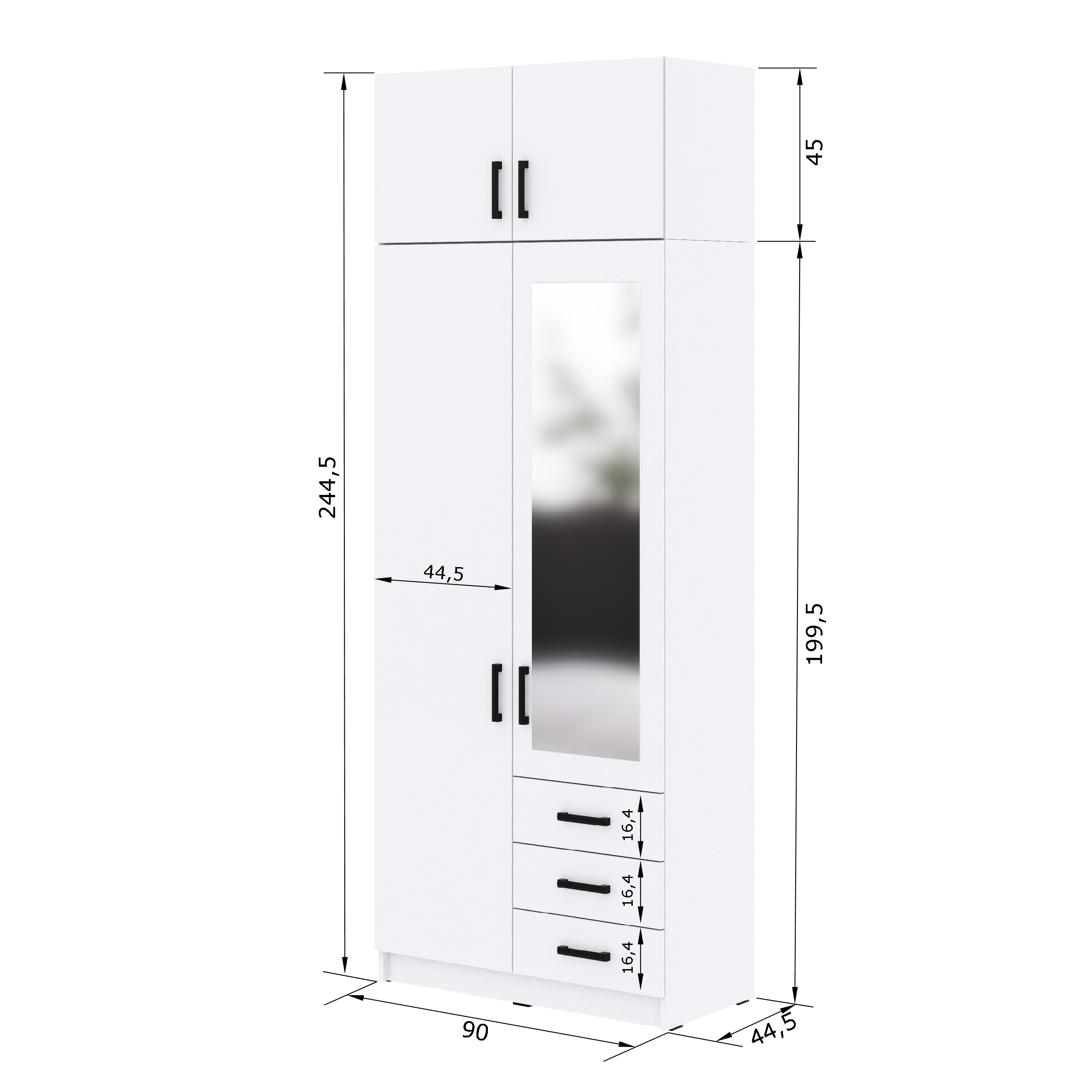 Praktická šatní skříň SIGMA 90 v bílé barvě se zrcadlem nabízí chytré a přehledné řešení pro ukládání oblečení i doplňků. Skříň je doplněna o nádstavbu nad satní skříní Sigma, aby vznikl další prostor pro ukládaní věcí. Díky modernímu minimalistickému designu se snadno hodí do ložnice, dětského pokoje i předsíně.