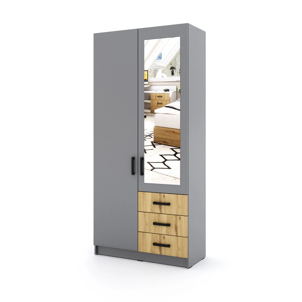 Šatní skříň SIGMA 90 se zrcadlem – šedá - šedá/dub