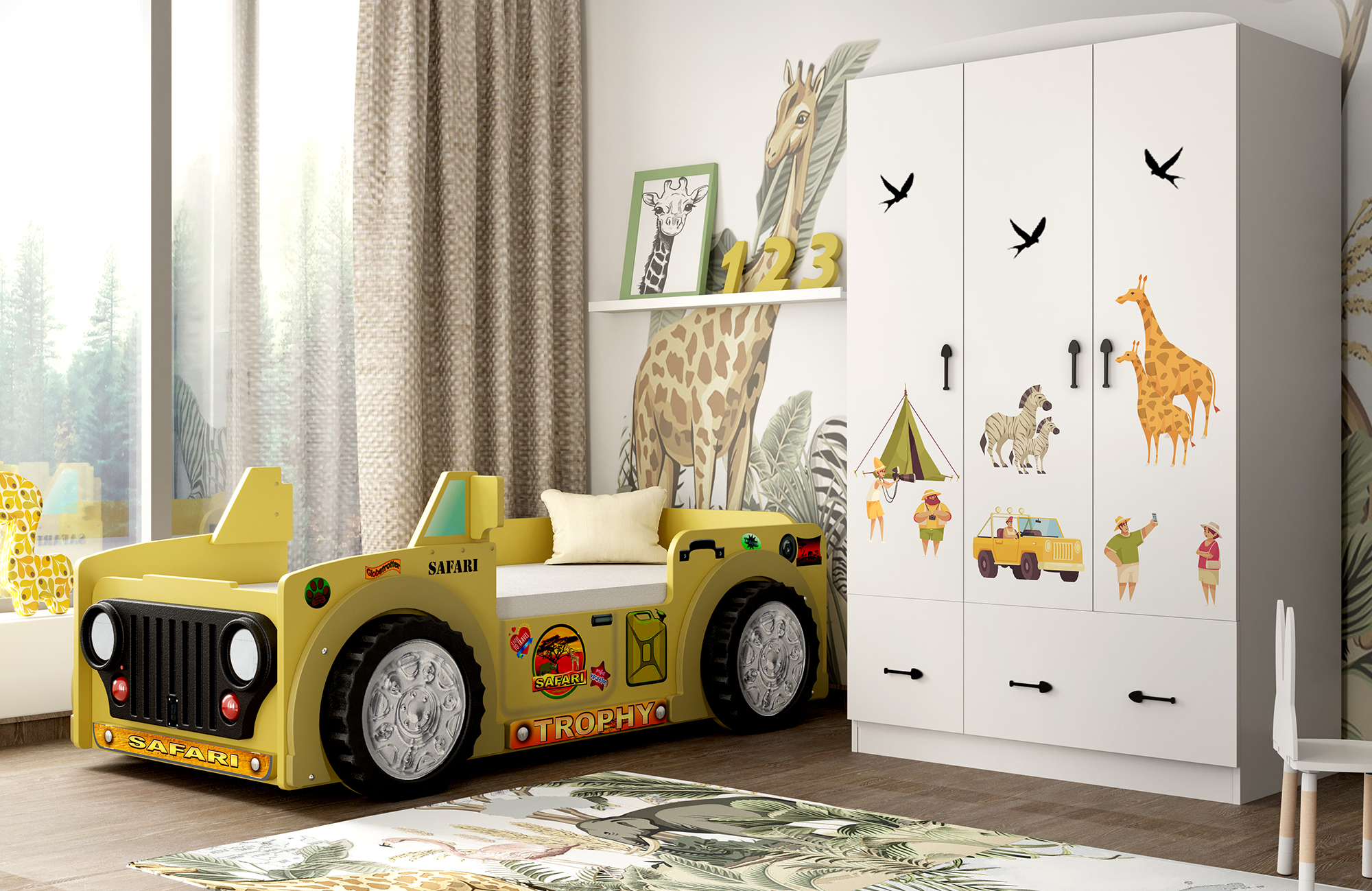 Tato skříň je nejen praktickým nábytkem, ale i krásným a inspirativním prvkem dětského pokoje. Každý den s ní může být novým dobrodružstvím na safari! Skříň se perfektně hodí ke komodě Safari a k posteli Jeep Army