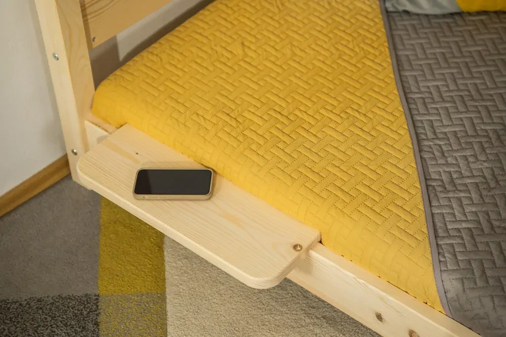 Police je navržena tak, že ji lze nasadit na rám postele o tl. 27mm - všechny postele zn. Maxido . Polici můžete nasadit na libovolné místo a lze ji posuvat. Jedná se o velmi praktický doplňek k dětské posteli. Můžete ji využít na odložení knihy, lampičky, nápoje, mobilního telefonu a dalších věcí.